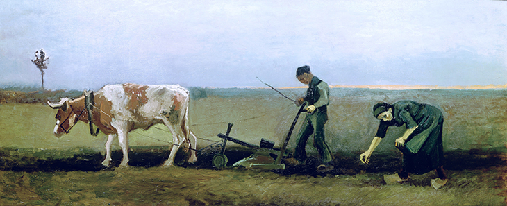 Das Bild gehört zu einer Gruppe von Gemälden, die der Eindhovener Goldschmied Antoon Hermans 1884 bestellte, um ein Zimmer in seinem Haus auszustatten. Sie sollten die vier Jahreszeiten anhand von Darstellungen aus dem Leben der Bauern illustrieren. Als Motive wählte Van Gogh den Sämann, den Pflüger, die Ernte, das Kartoffelsetzen und – für den Winter – einen Hirten mit Ochsenkarren.